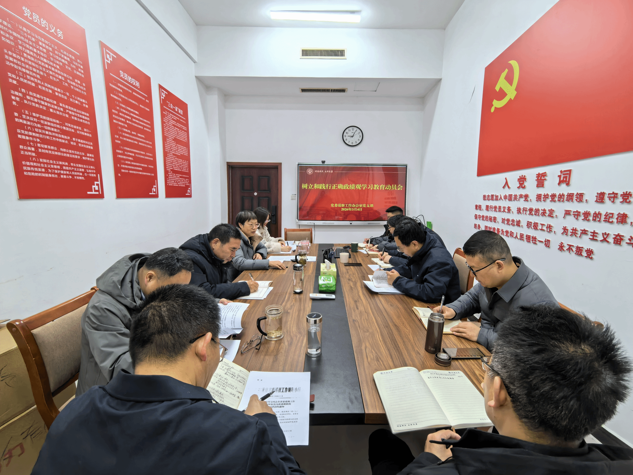 3月4日上午,党委巡察工作办公室党支部在金明校区行政楼139会议室召开树立和践行正确政绩观学习教育动员会,传达学校会议精神,安排部署相关工作。会议由正处级巡察专员、巡察办负责同志胡春贞主持,巡察办全体成员参会。