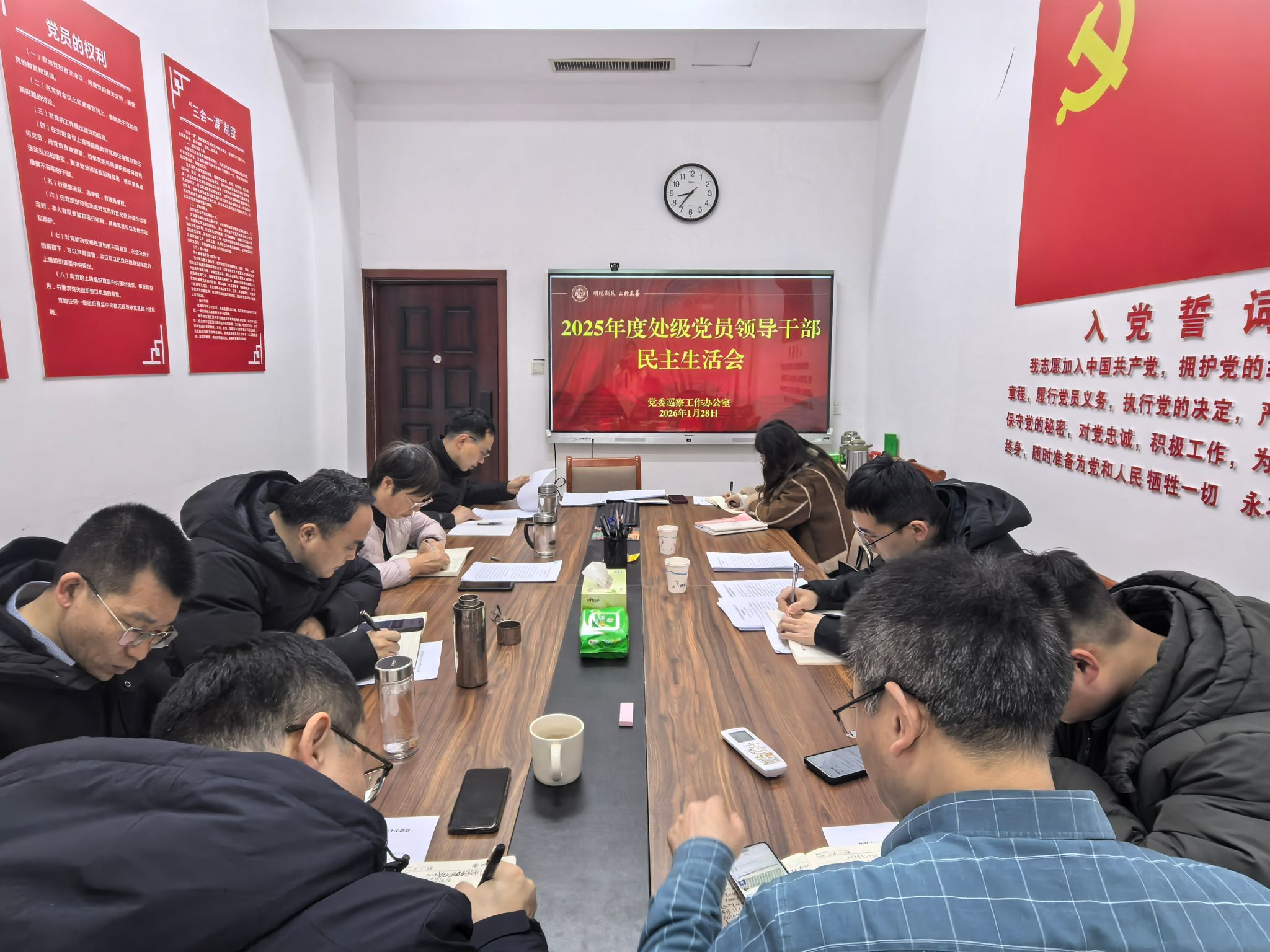 按照学校党委部署和要求,1月28日,党委巡察工作办公室在金明校区行政楼139会议室召开2025年度处级党员领导干部民主生活会,学校督导组相关同志到会指导,党委巡察工作办公室全体在校人员参会。会议由正处级巡察专员、党委巡察工作办公室主要负责人胡春贞主持。