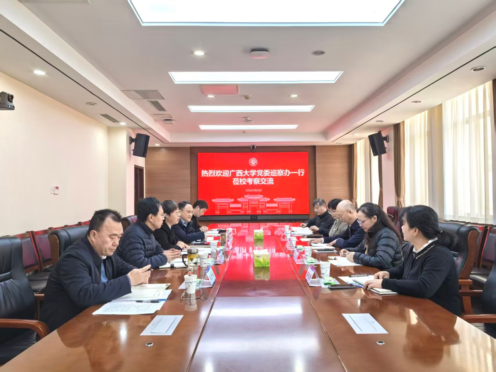 3月20日上午,广西大学党委巡察办一行来我校考察交流巡察工作。学校纪委、党委组织部、巡察办相关人员参加会议。会议由正处级巡察专员、巡察办负责同志胡春贞主持。